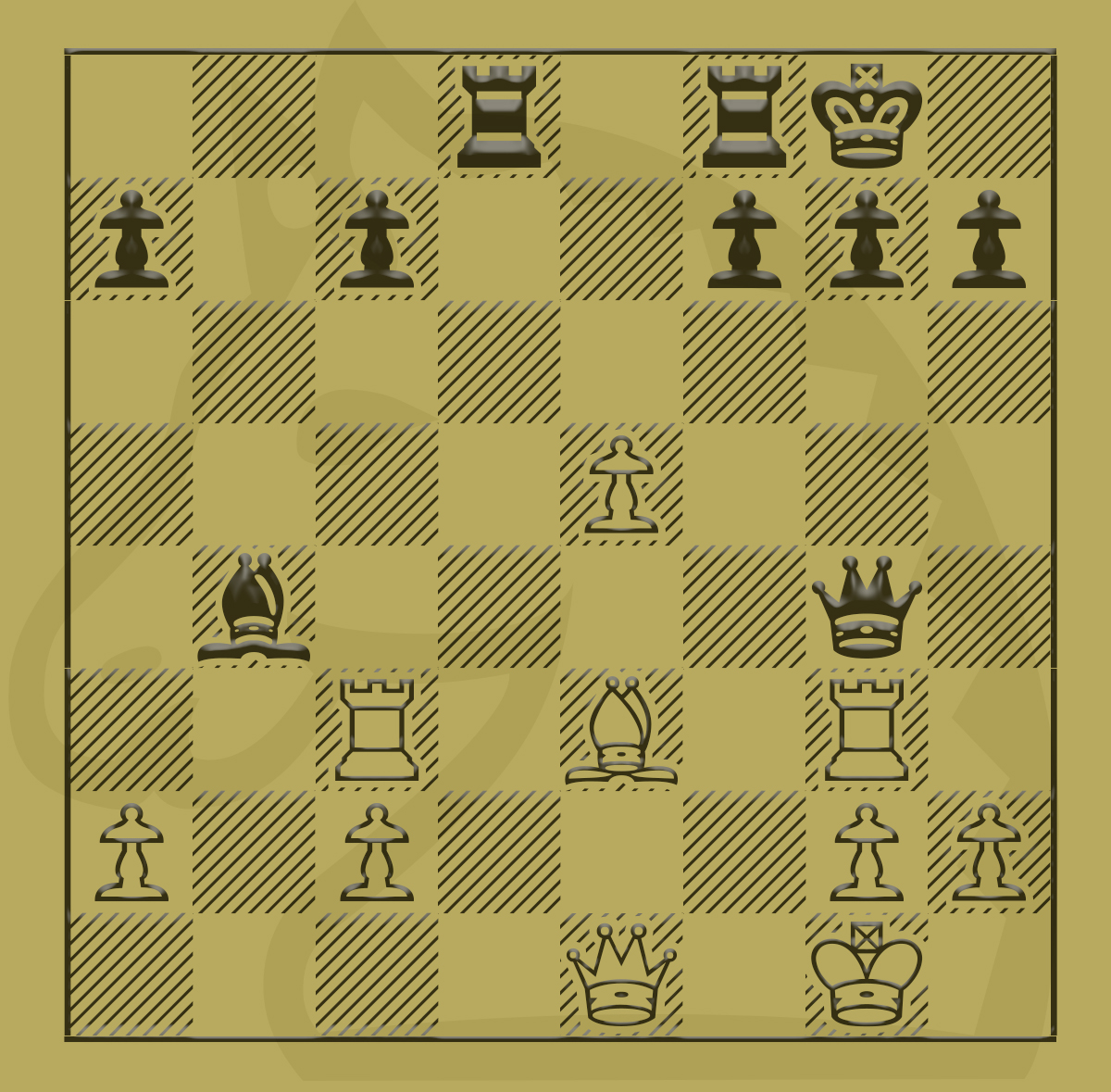 Dr. A. A. Mengarini-M. Radoicic Third Forum Open New York, 1967 [Hans Kmoch, “Games from Recent Events”, Chess Review, July 1967] 1.d4 d5 2.c4 e6 3.Nc3 c5 4.cxd5 cxd4 5.Qxd4 Nc6 6.Qd1 exd5 7.Qxd5 Bd7 8.Nf3 Nf6 9.Qd1 Bc5 10.e3 Qe7 11.a3 (11.Be2 is urgent.) 11…O-O-O 12.Be2 (Now White returns the Pawn for no obvious reason. 12.Bd2 is indicated. White has a difficult job then but does after the text move also.) 12…Bh3 13.Qc2 Bxg2 14.Rg1 Bxf3 15.Qf5+ Kb8 16.Qxf3 Ne5 17.Qf5 g6 18.Qc2 Rd7 19.b4 Bb6 20.Bb2 Rc8 21.Rd1 Rdc7 22.Qb3